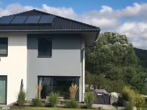 Einfamilienhaus mit grauer Fassadenabsetzung
